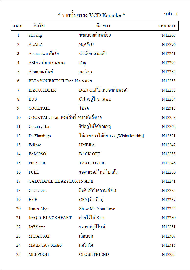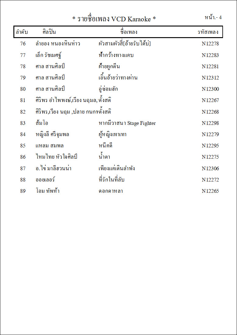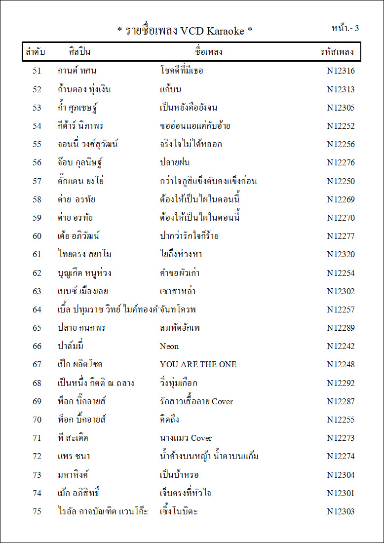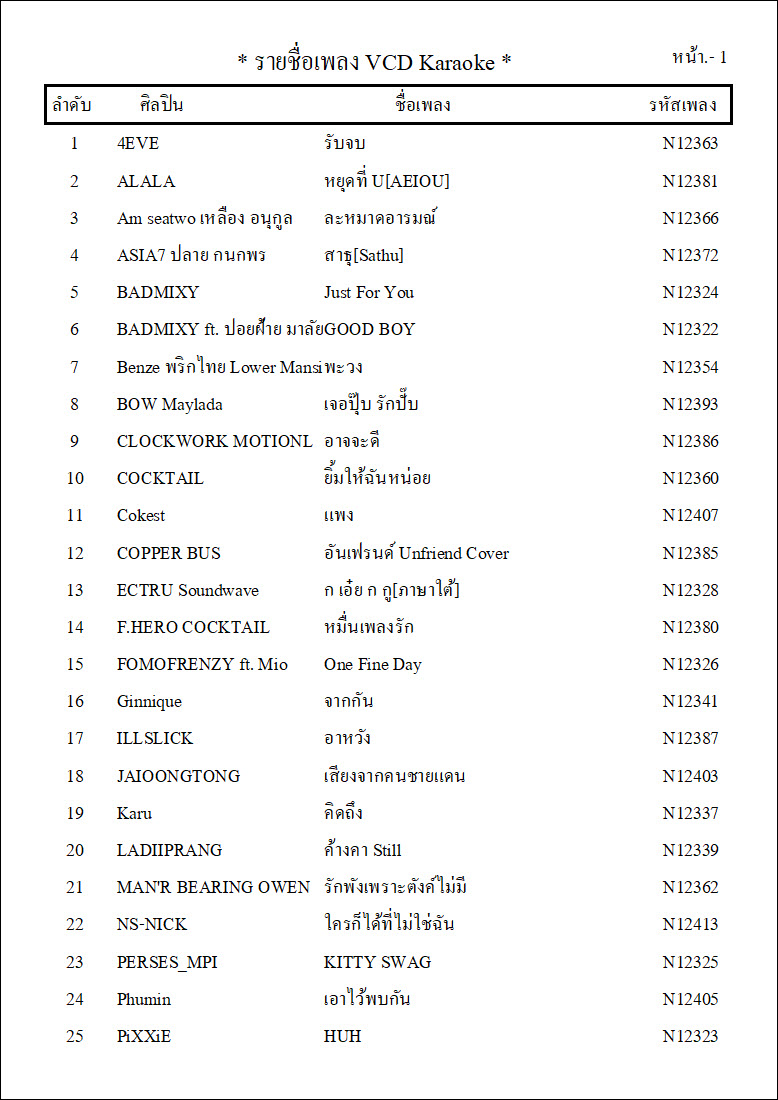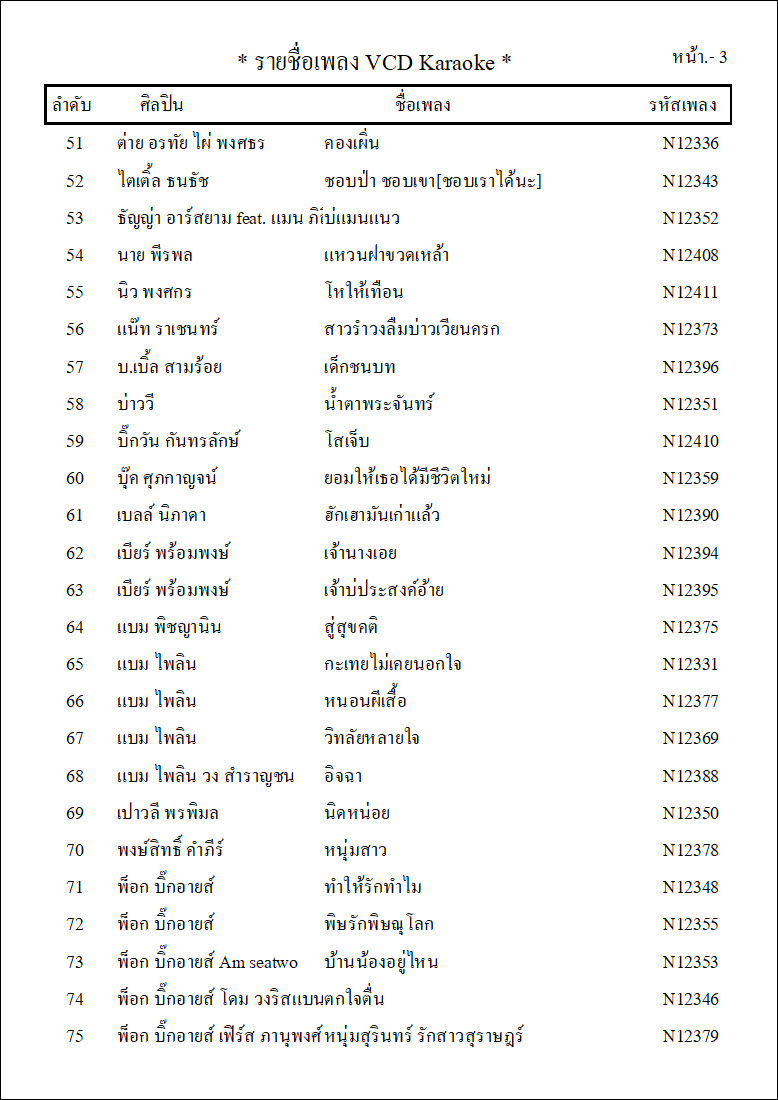 รายชื่อเพลงย้อนหลังทั้ง 12 ชุด