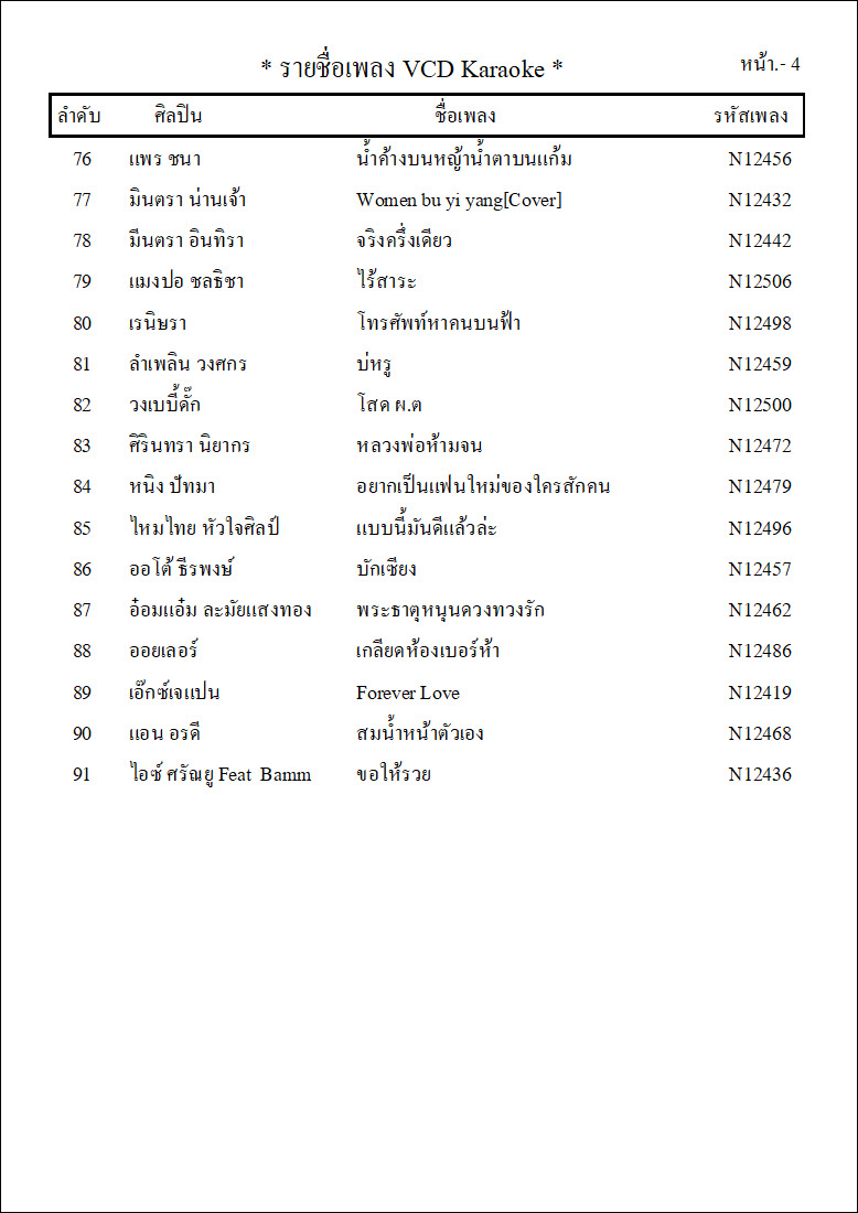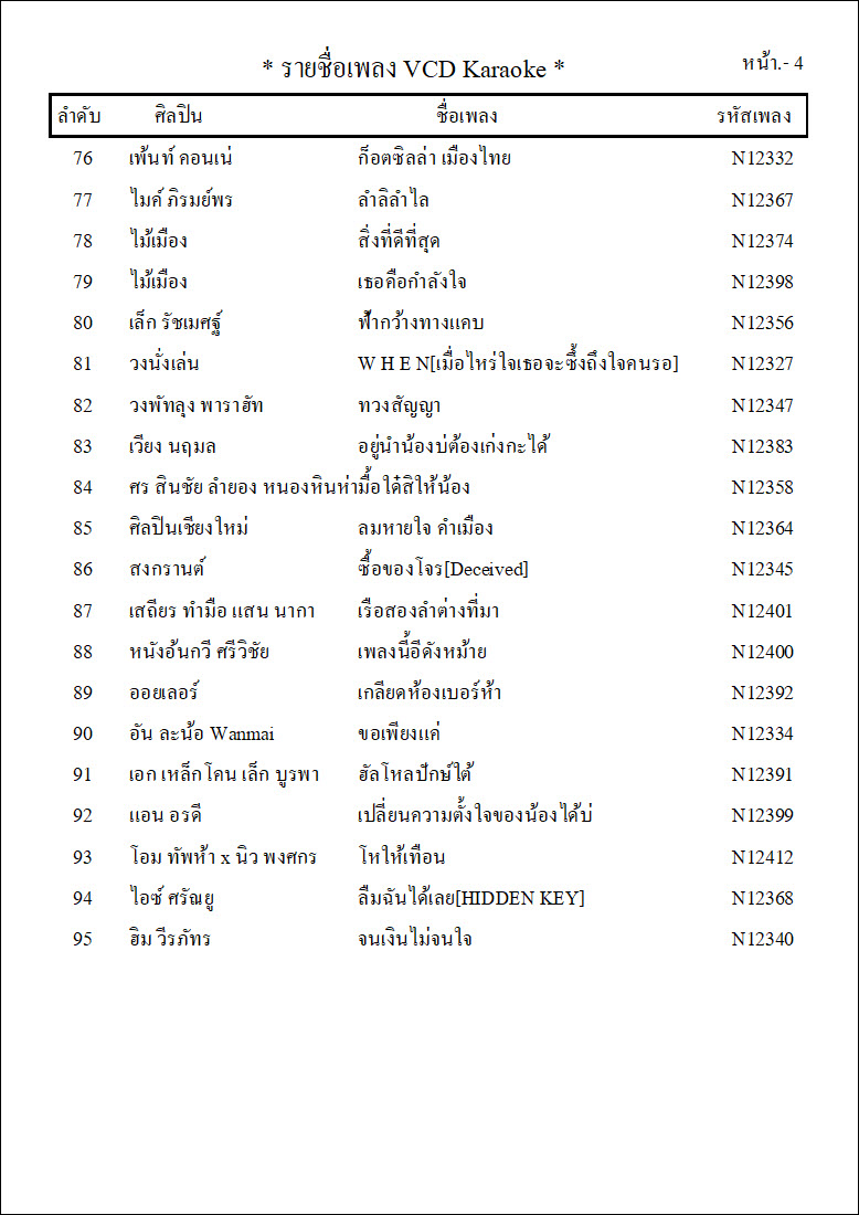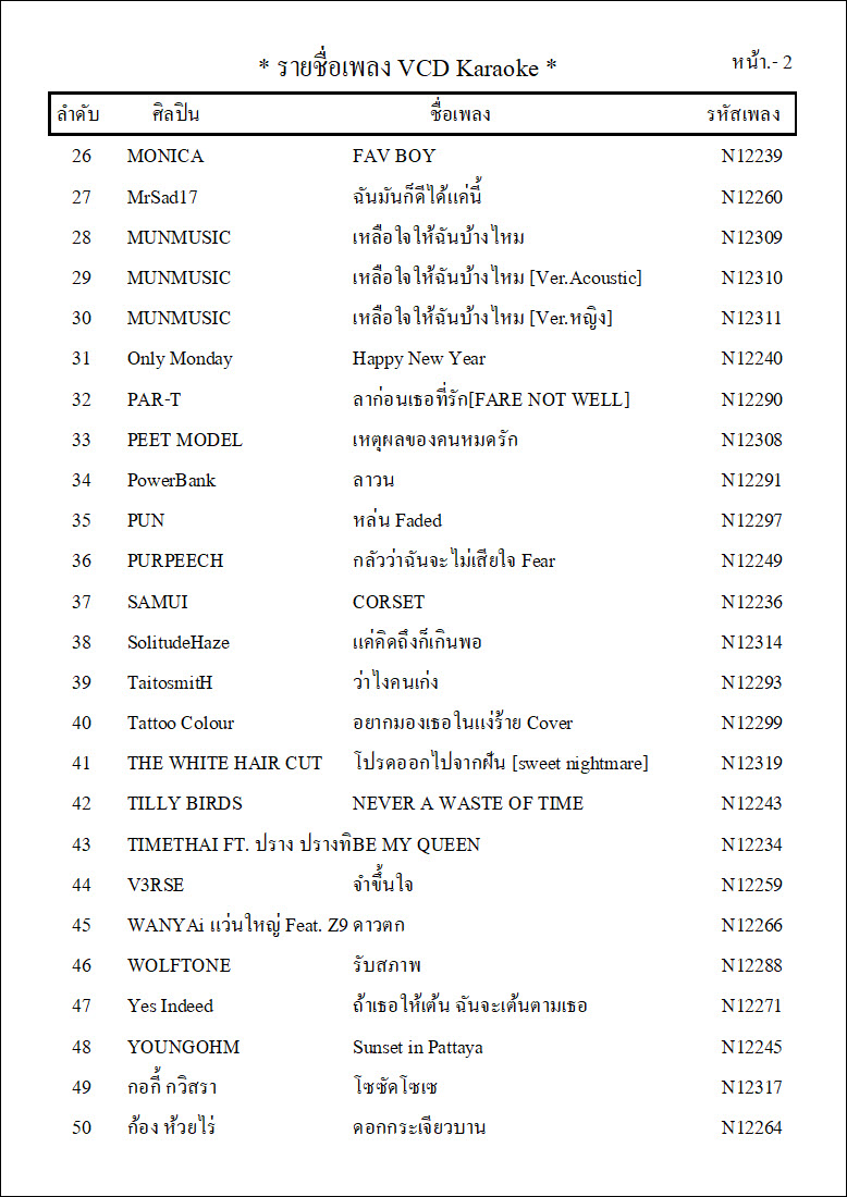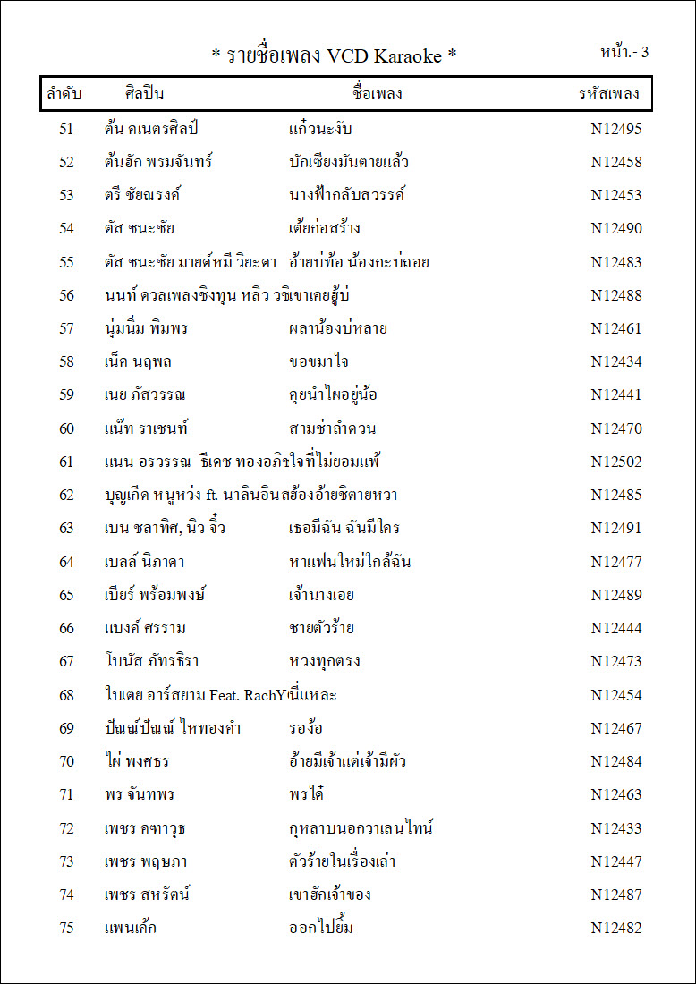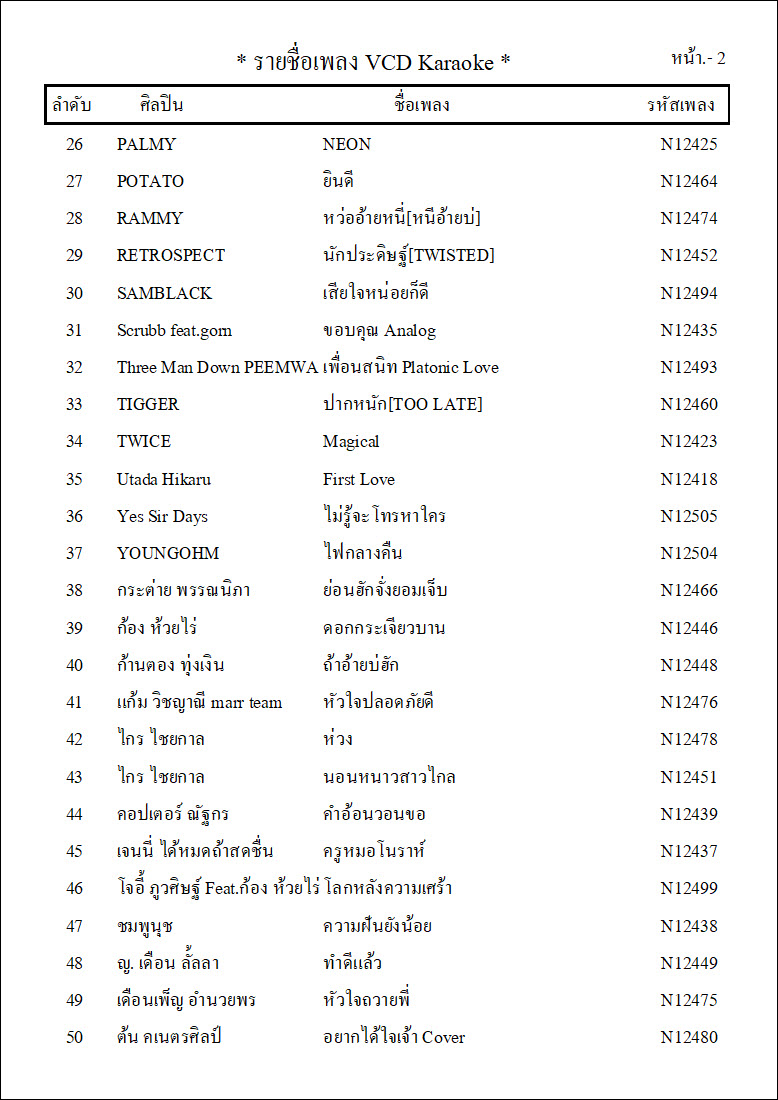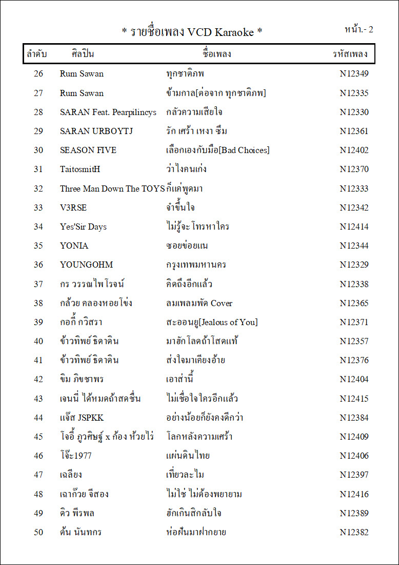 รายชื่อเพลงย้อนหลังทั้ง 12 ชุด